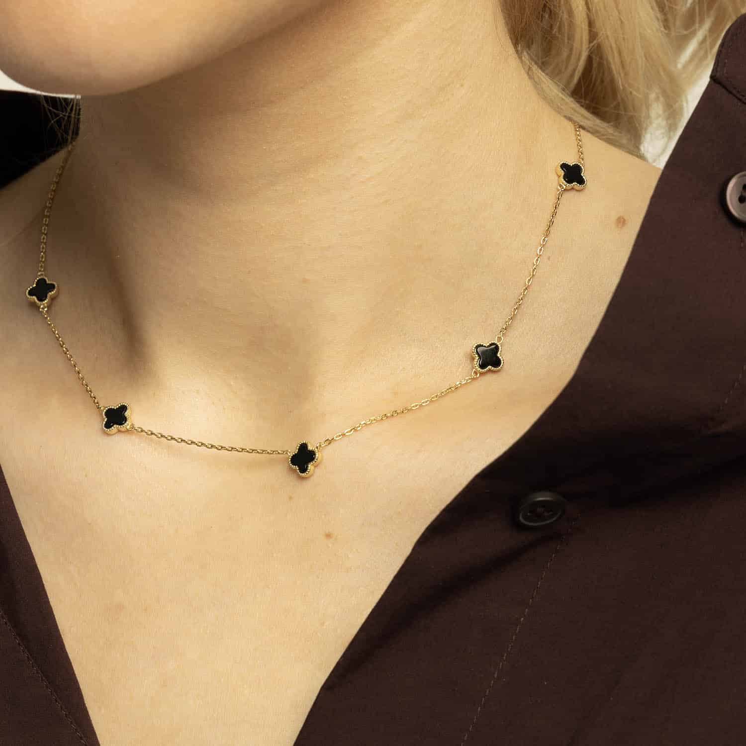 Smykke i sølv sort kløver