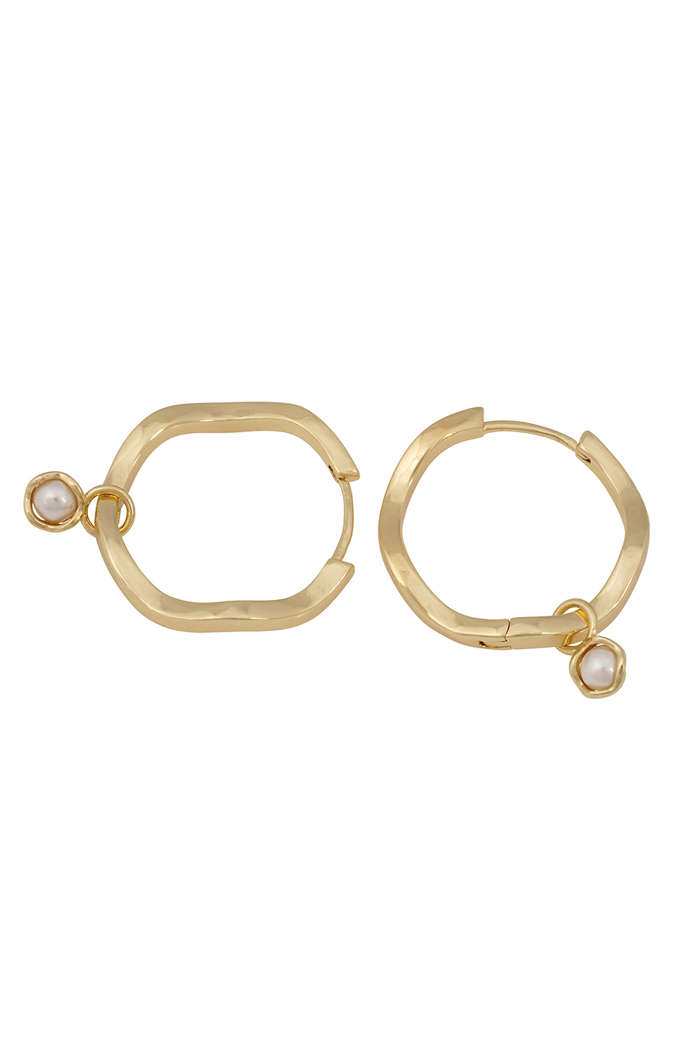 Wavy hoop earrings with an elegant pendant featuring a set pearl.