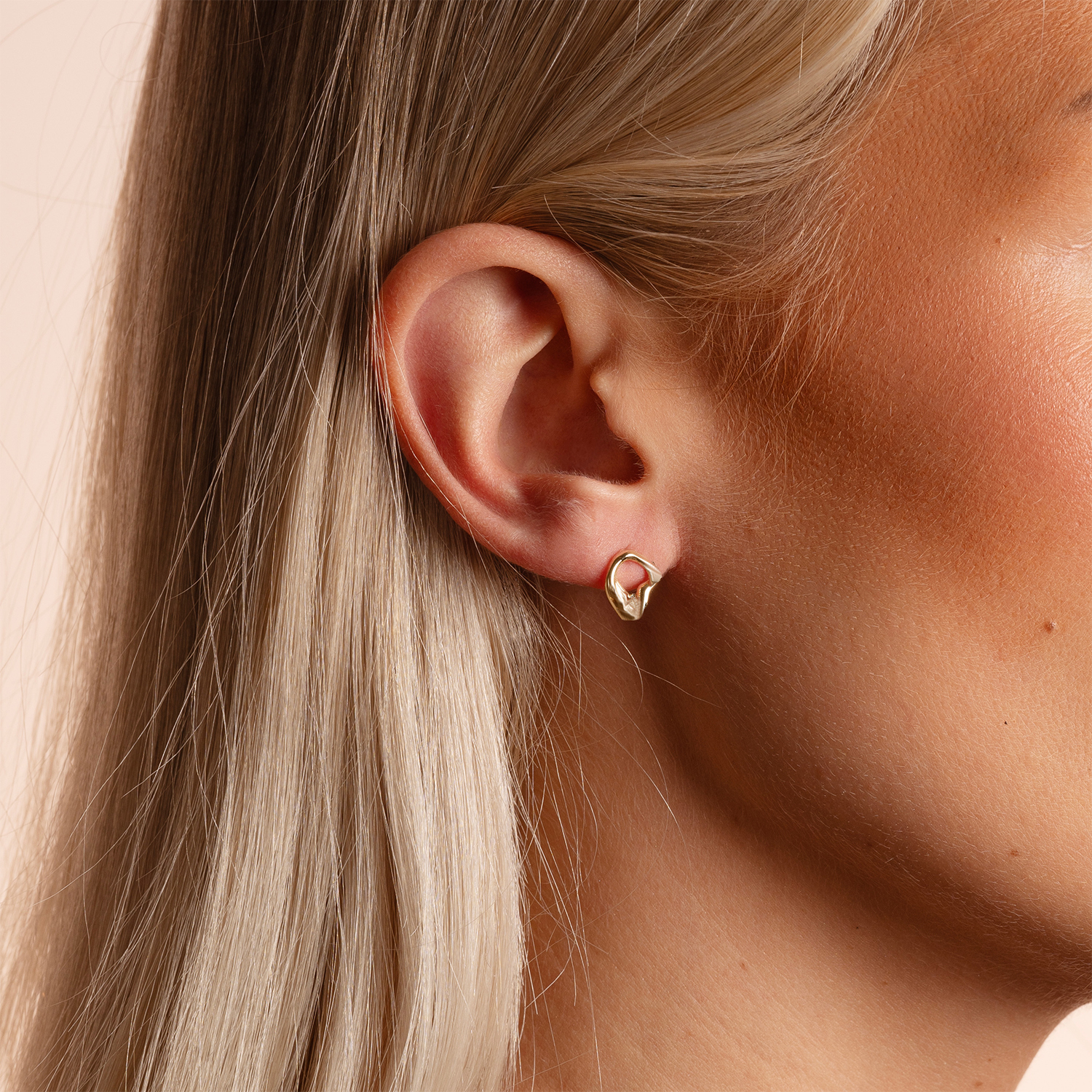 Stud earrings with an open, rounded design, soft lines, and subtly placed inset stones.