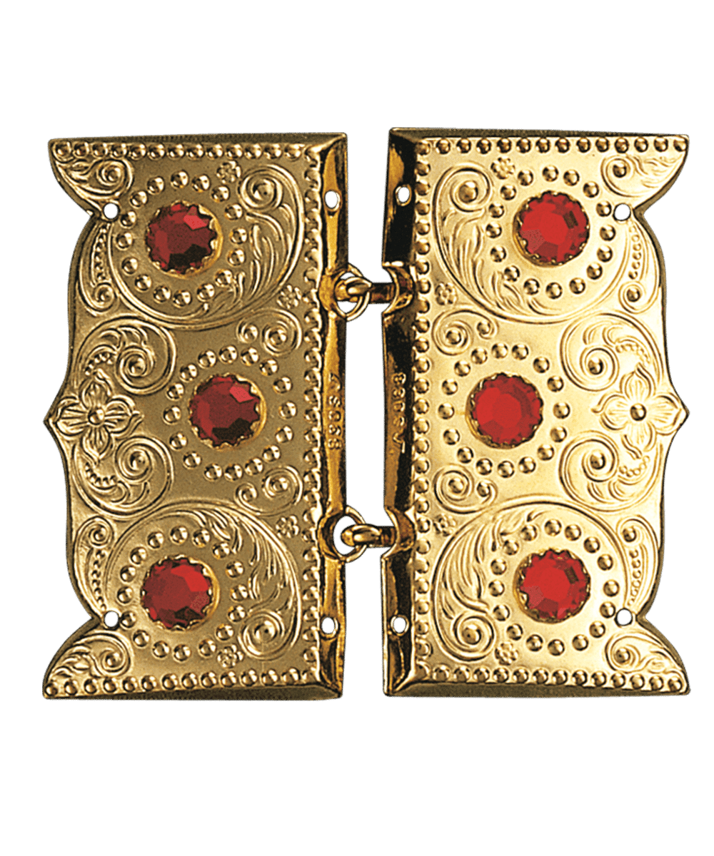 Beltespenne Tysnes med raud stein og syhol, forgylt