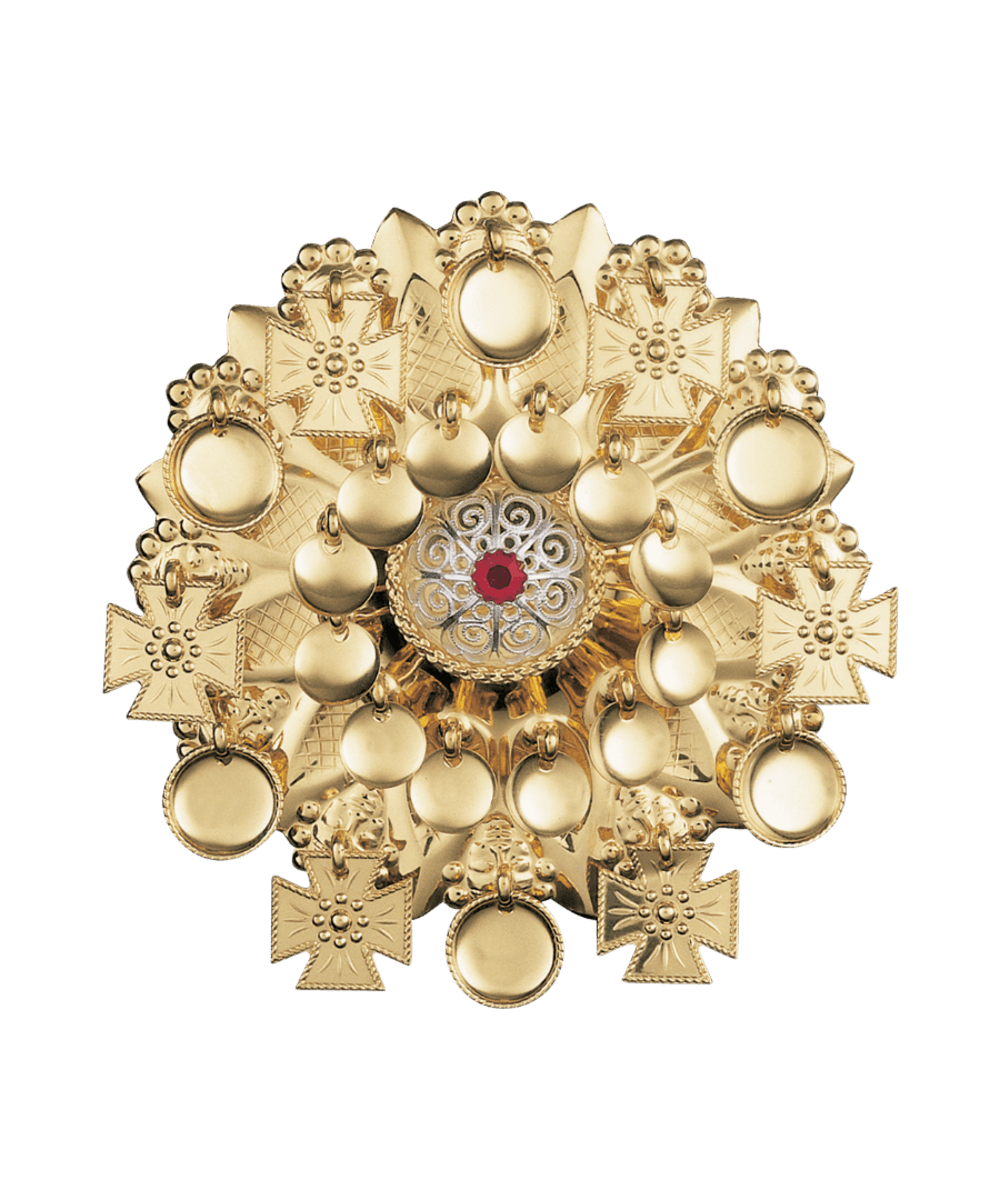 Sølje med raud stein, forgylt